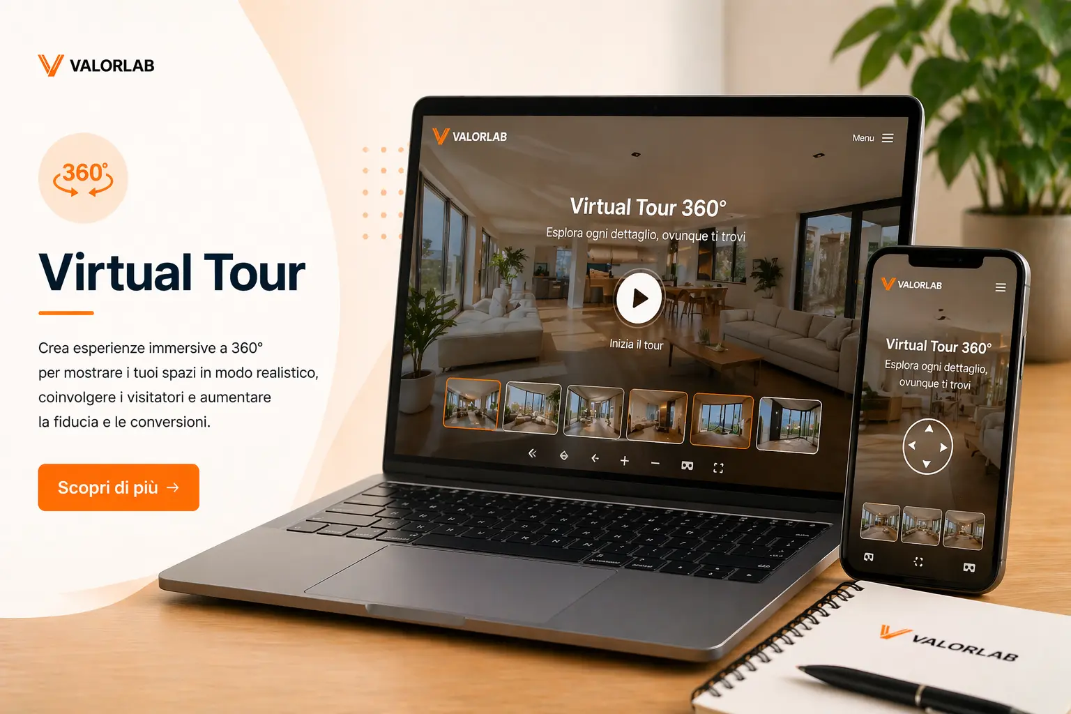 Con un virtual tour 360° i clienti possono esplorare ambienti in modo reale e completo.